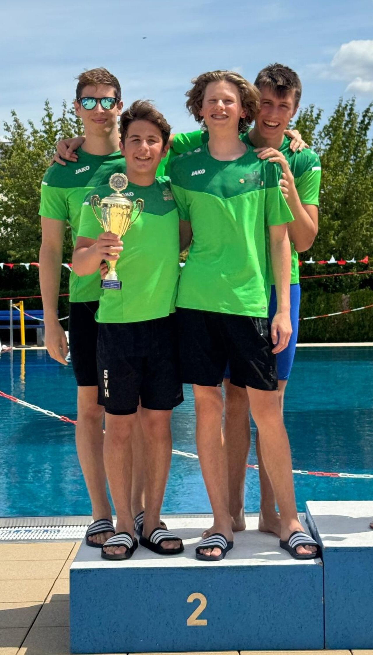 Die männliche Staffel um Paul Gromann, Justin Rieger, Daniel Buzengeiger und Pascal Reinmuth sicherten sich nämlich den 2. Platz über 4 x 100m Freistil mit einer Zeit von 04:17,66.